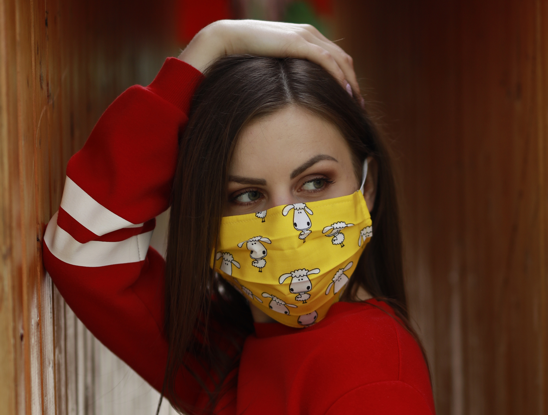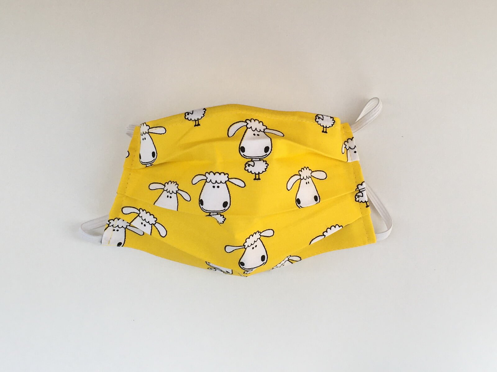 Žlté rúško s bielymi ovečkami